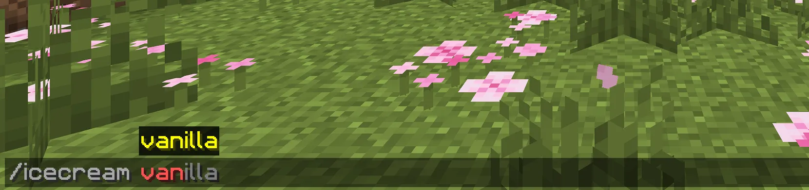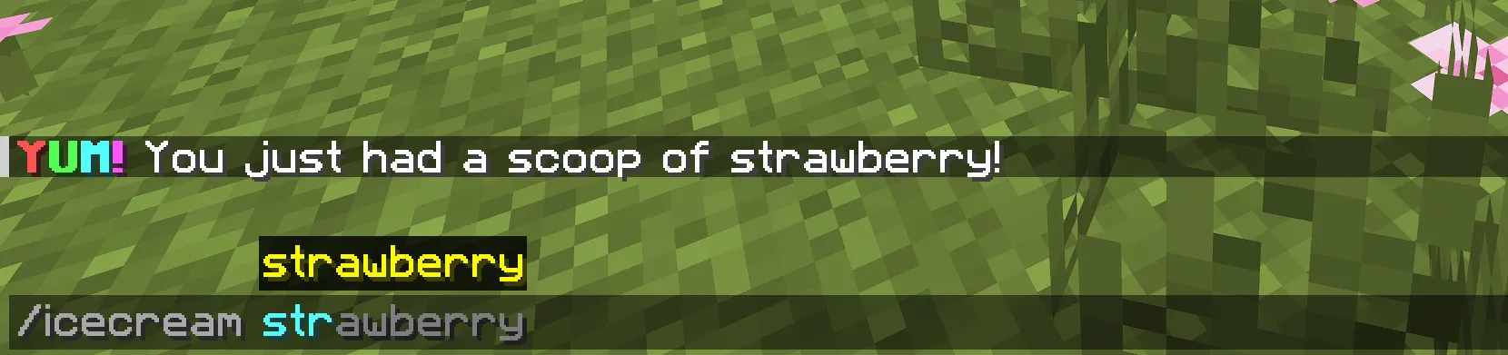 @Override    public ArgumentType<String> getNativeType() {        return StringArgumentType.word();    }}Finally, we can just declare our command like this, and we are done! And again, you can just directly get the argument as a ready IceCreamFlavor